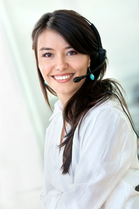 customer support operator woman smiling at the office