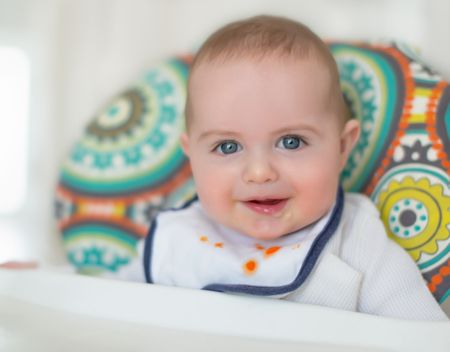 Cute baby eating puree