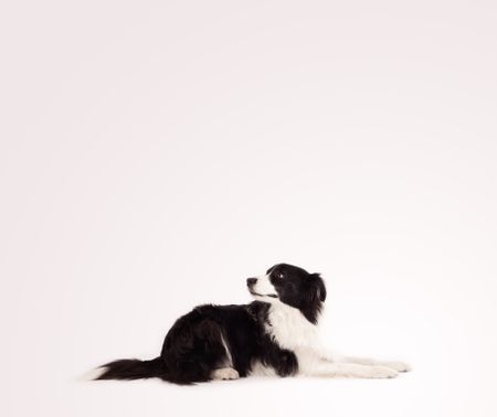 Cute black and white border collie with empty space
