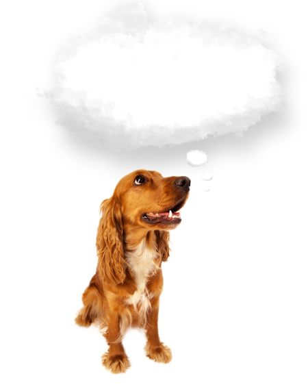 Cute brown cocker spaniel with empty cloud bubble above her head