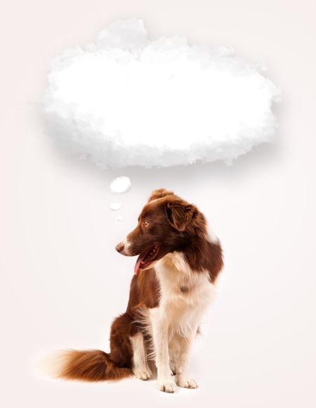 Cute brown and white border collie with empty cloud above his head