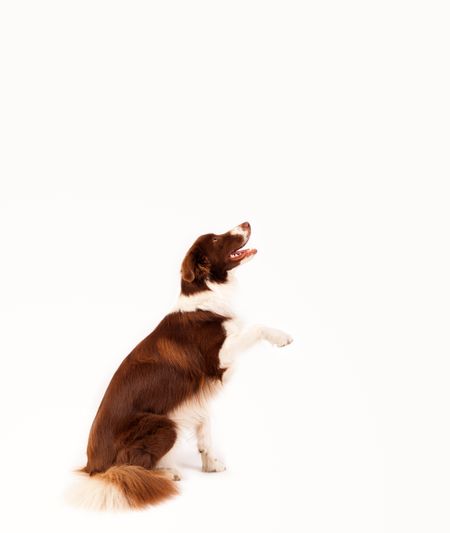 Cute brown and white border collie with empty space