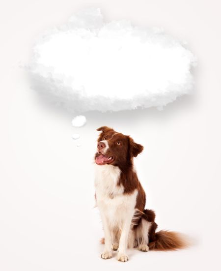 Cute brown and white border collie with empty cloud above his head