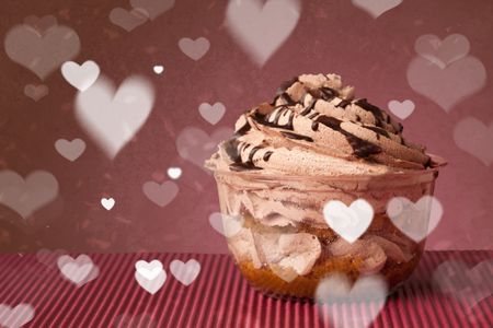 Delicious pretty party cakes with heart shape symbols on colorful background