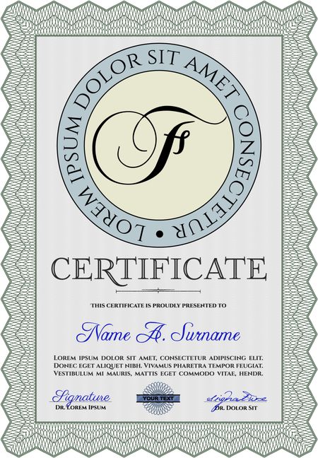Diploma. With background. Border, frame. Good design. Green color.