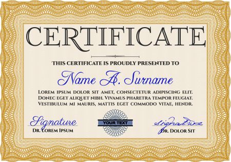 Diploma. Border, frame. With background. Good design. Orange color.
