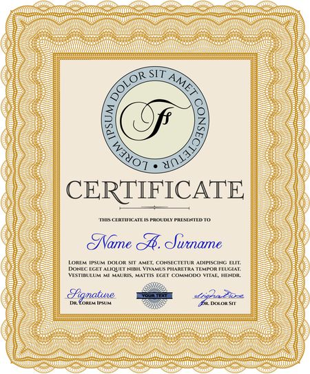 Diploma or certificate template. Detailed.With complex linear background. Artistry design.
