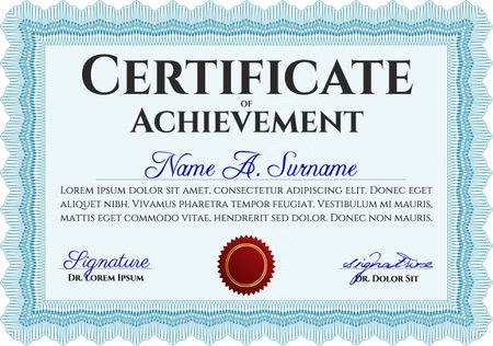 Diploma or certificate template. Superior design. Vector pattern that is used in currency and diplomas.Complex background. Light blue color.