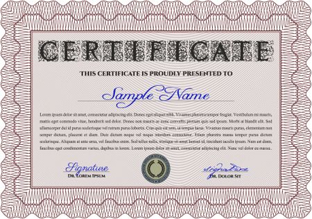 Diploma or certificate template. Vector illustration. With complex background. Lovely design. Red color.