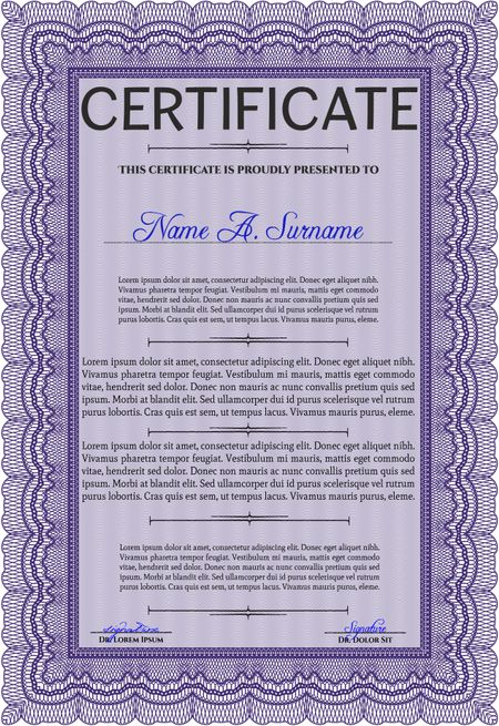 Diploma or certificate template. Vector pattern that is used in currency and diplomas.Superior design. Complex background. Violet color.