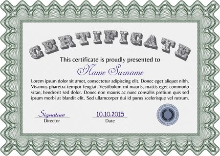 Diploma. Cordial design. With guilloche pattern and background. Vector certificate template.
