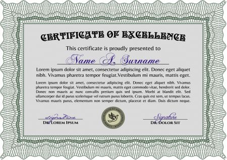 Diploma. Excellent design. Vector pattern that is used in money and certificate.With complex linear background.