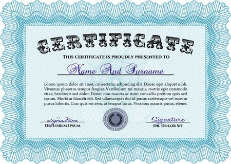 Diploma. Frame certificate template Vector.Cordial design. Printer friendly.