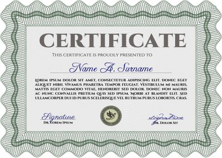 Diploma template. With background. Border, frame. Excellent design. Green color.