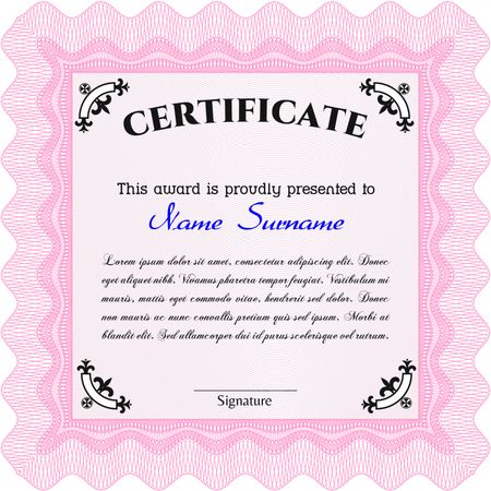 Diploma template. With background. Border, frame. Excellent design. Pink color.