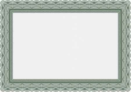 Diploma template or certificate template. With great quality guilloche pattern. Superior design. Border, frame.