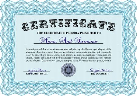 Diploma template or certificate template. Superior design. Money style.Printer friendly.