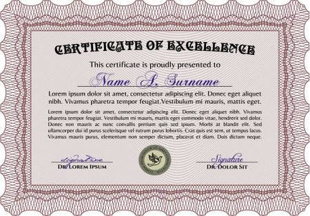 Diploma template or certificate template. Vector pattern that is used in currency and diplomas.With linear background. Cordial design.