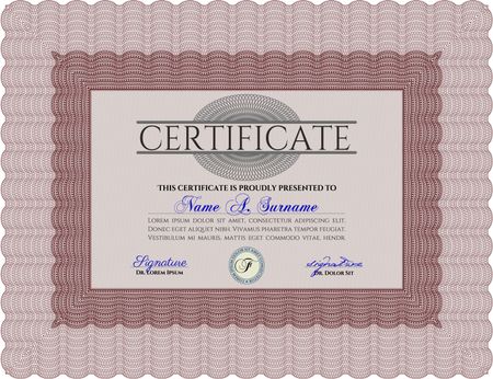 Diploma template. With complex background. Excellent design. Vector illustration. Red color.