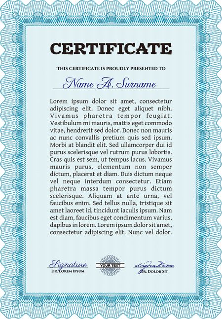 Diploma template. Complex background. Sophisticated design. Vector pattern that is used in money and certificate.