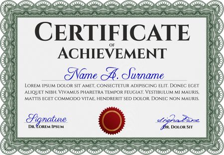 Diploma template. With complex background. Vector illustration. Lovely design. Green color.