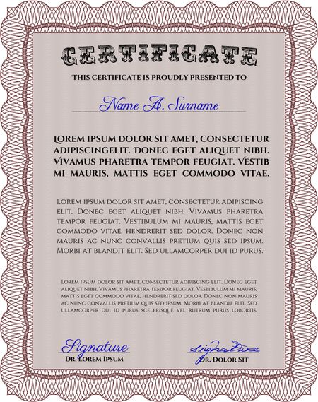 Diploma template. Excellent design. Border, frame. With background. Red color.