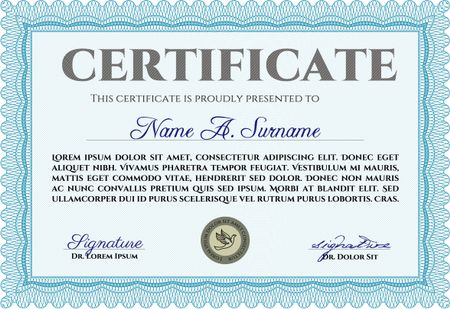 Diploma template. Excellent design. With complex background. Vector illustration. Light blue color.