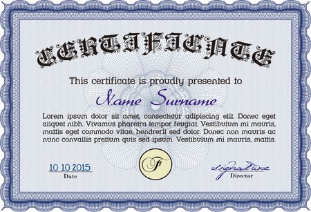 Diploma template. Excellent design. With complex background. Vector illustration. Blue color.