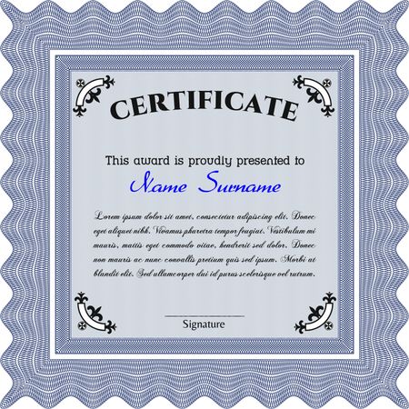 Diploma template. With linear background. Complex design. Vector certificate template.