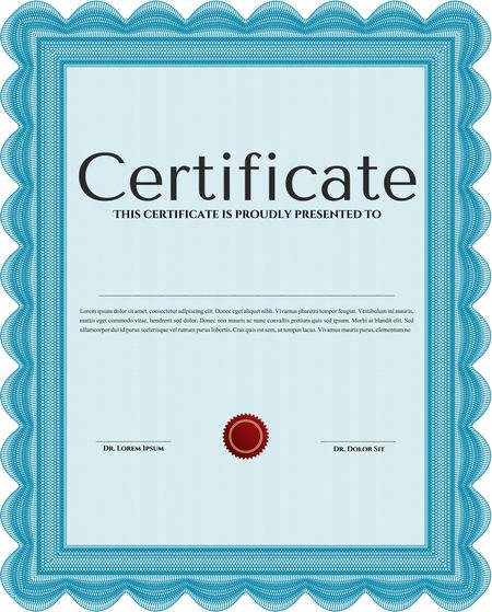 Diploma template. Lovely design. Vector illustration. With complex background. Light blue color.