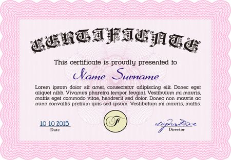 Diploma template. Modern design. With guilloche pattern and background. Border, frame.