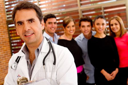 Doctor at the hospital with patients on the background