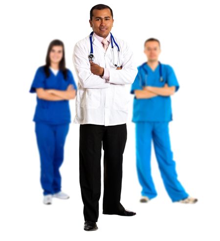 doctor leading a group isolated over white background