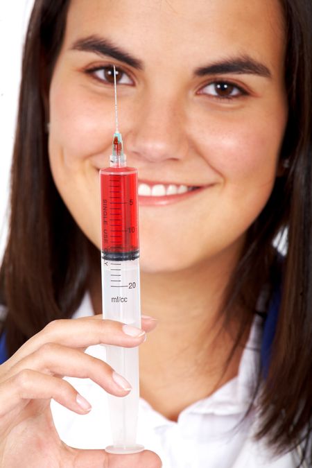 doctor with a syringe isolated over a white background