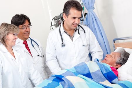 Doctors checking on an old patient at the hospital