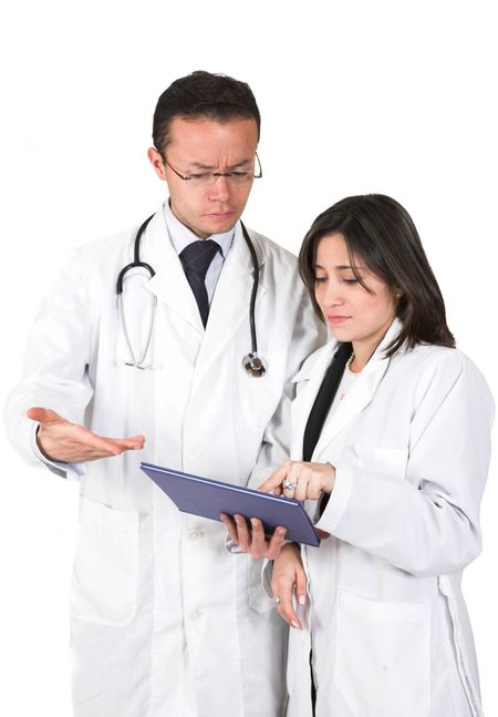 doctors discussing a case over white background