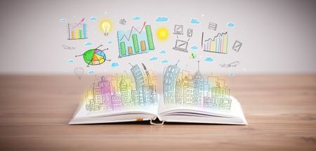 drawing of a colorful business scheme on an opened book
