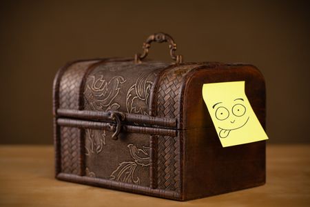 Drawn smiley face on a post-it note sticked on a jewelry box