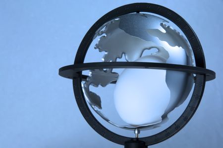 Egg inside model globe of Earth