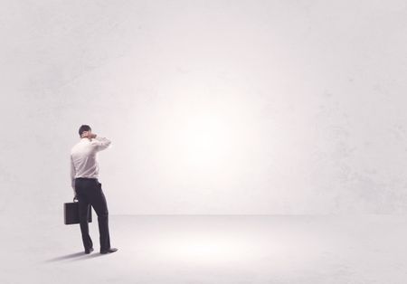 Elegant business person standing with his back looking at big empty white space concept