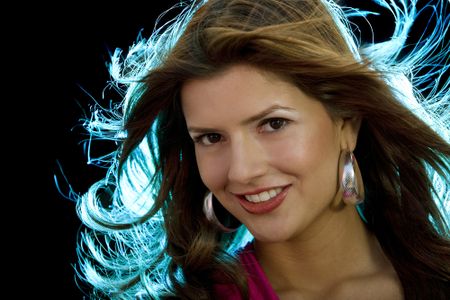 elegant or fashion woman portrait smiling isolated over a black background