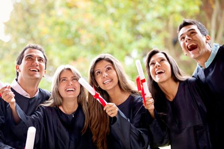 Excited group of friends on their graduation day