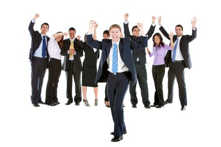 Excited group of young executives isolated over a white background