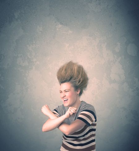 Extreme hair style young woman portrait on vintage background