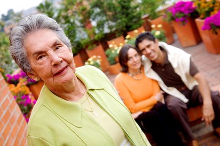 family looking very happy in a portrait at home with the mother in front of her daughter and husband