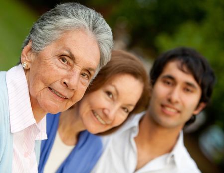 Family portrait of a grandmother her daughter and grandson smiling