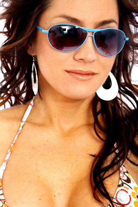 fashion or casual woman portrait wearing sunglasses - isolated over a white background