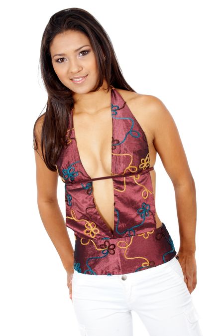 fashion woman portrait wearing white jeans and a fashionable top