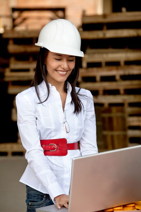 Female architect with a laptop at a construction site
