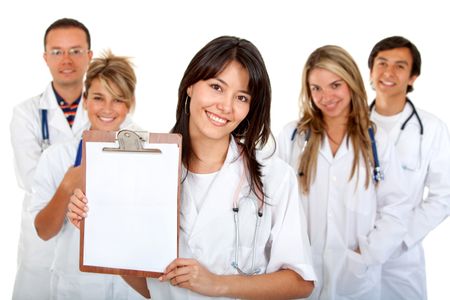 https://www.freestock.com/free-photos/female-doctor-displaying-notepad-team-isolated-40843288